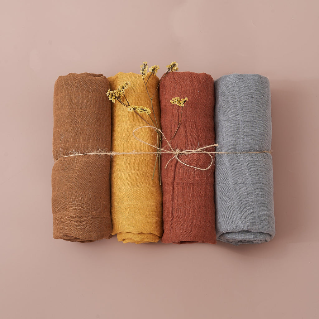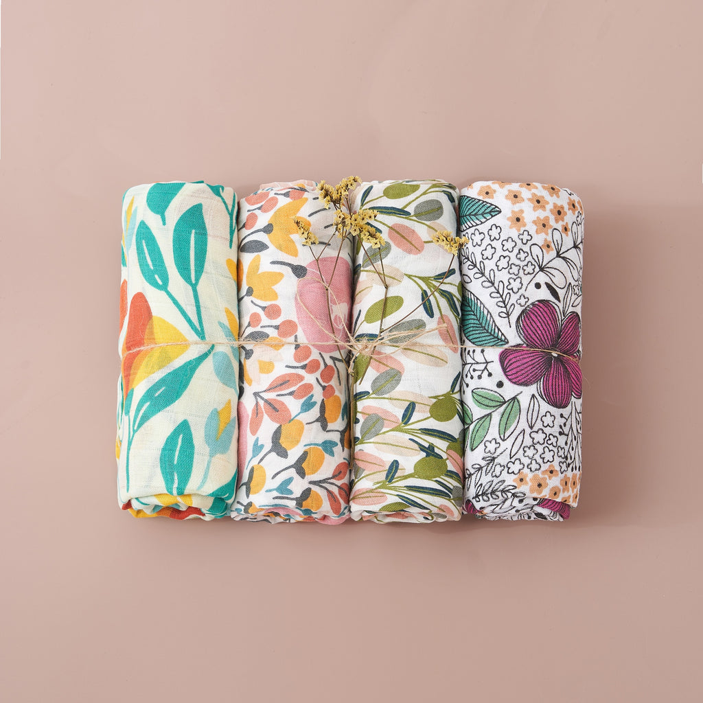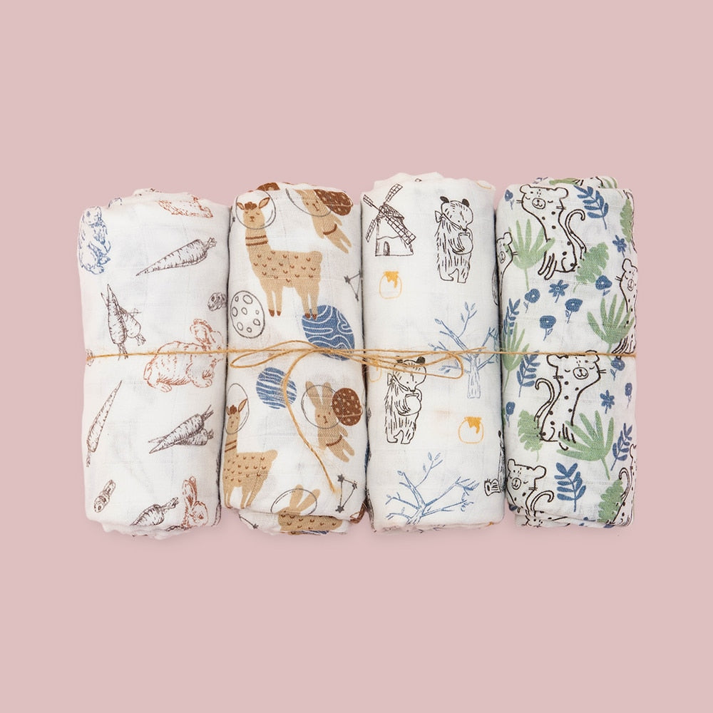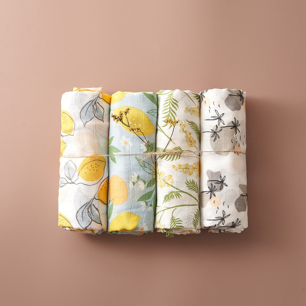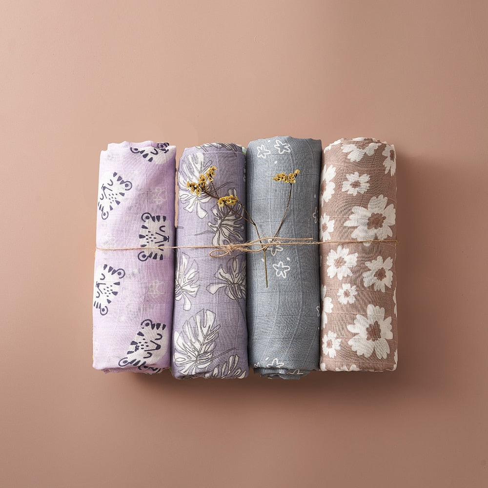 4Pcs Cotton Baby Swaddle Blanket Gift Set