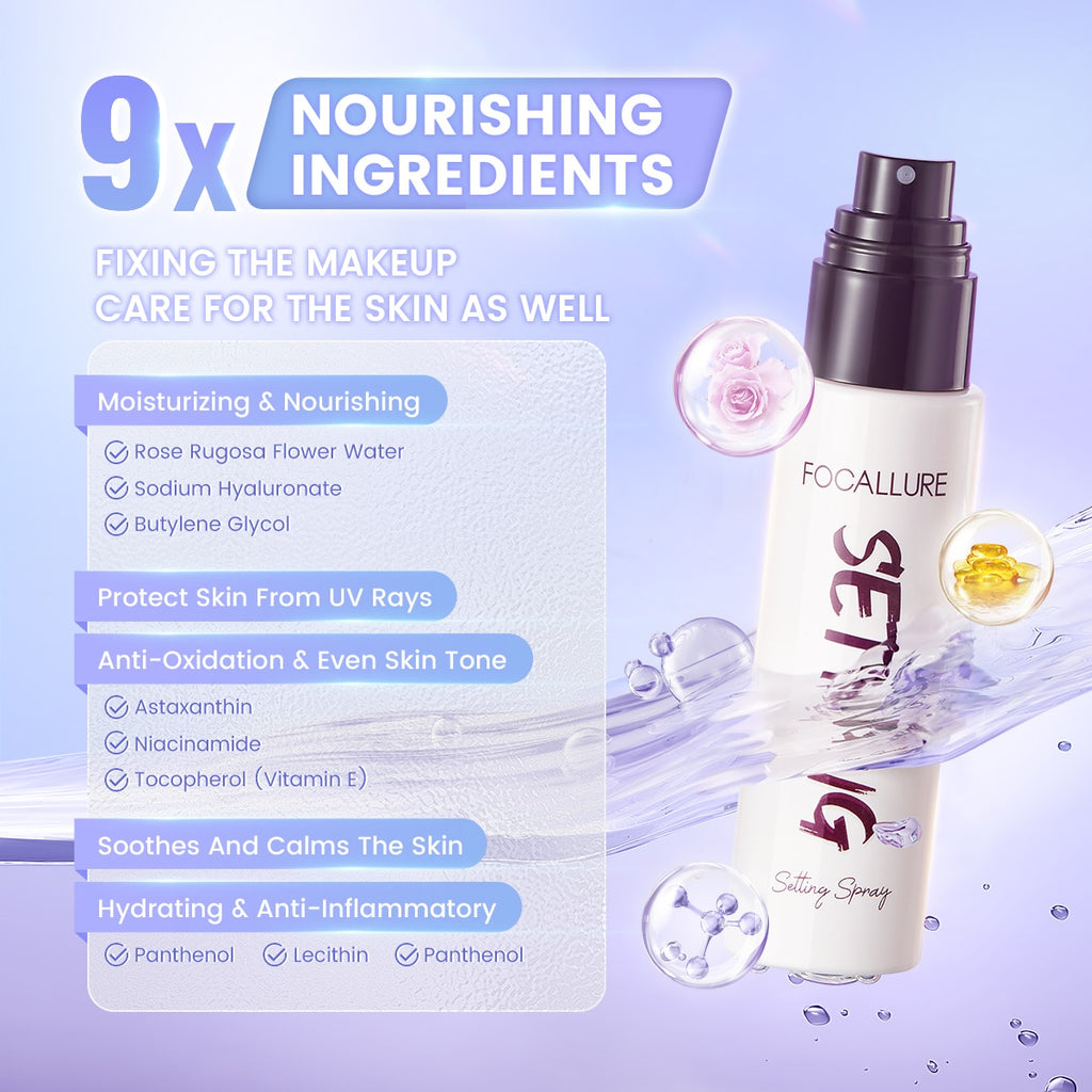 2. Hold the spray 15cm away from face and spray in an "X" shape. Following that, spray once more in a "T" shape.