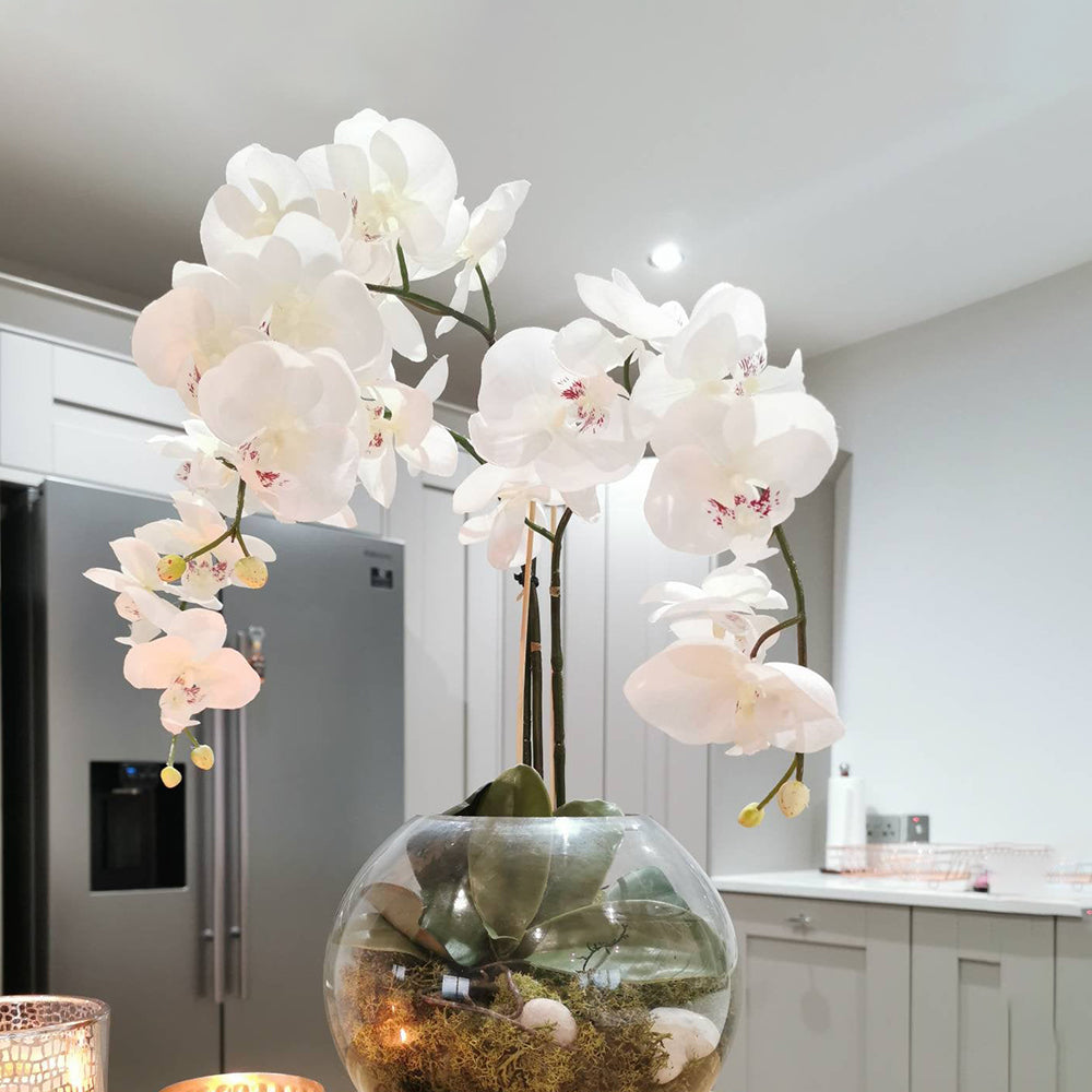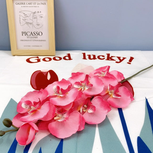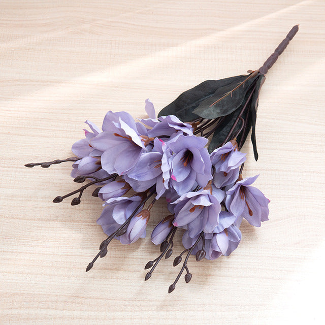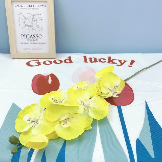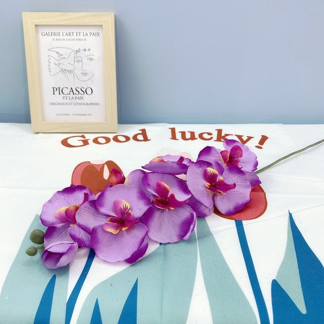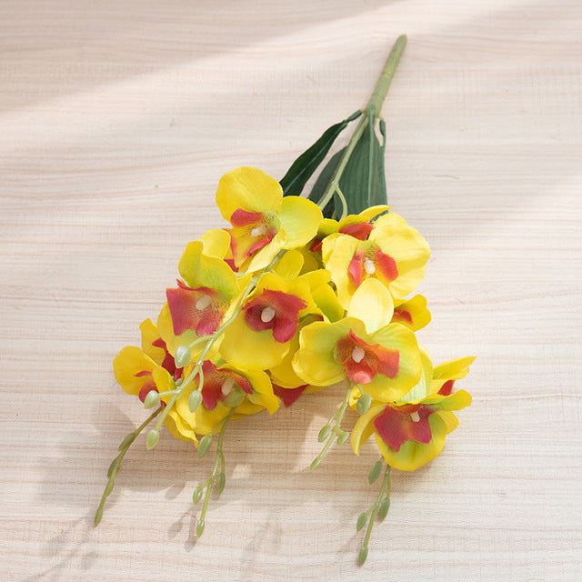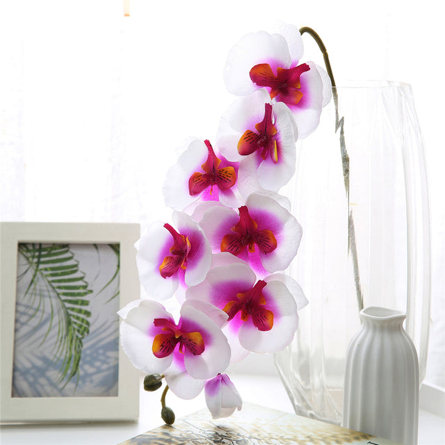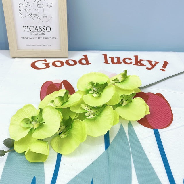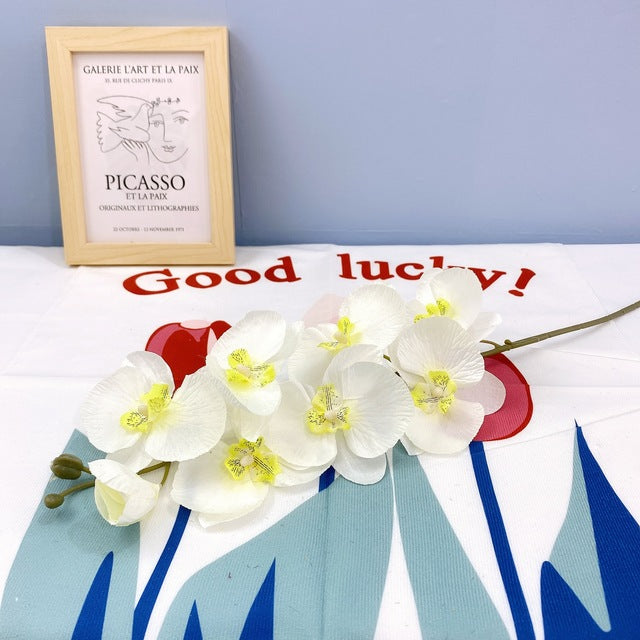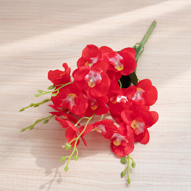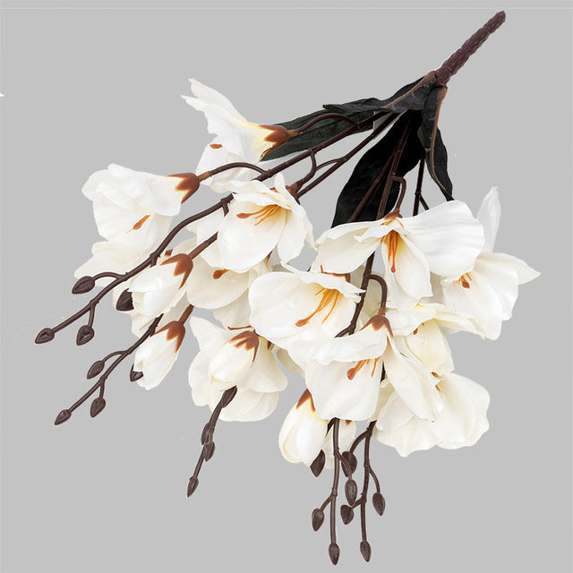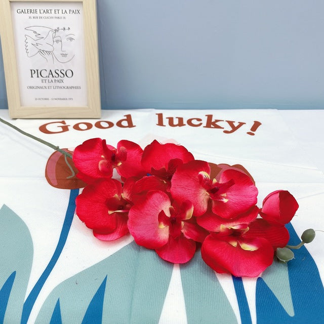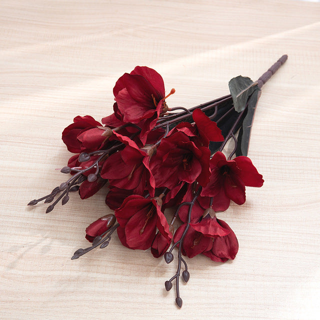 Size: The flower is about 70CM long and the flowered part is about 33CM long. There are 7 large flowers and 1 bud. The diameter of the flower is 10CM*9CM, and the diameter of the bud is about 4CM. The flower stem is covered with iron wire and can be bent at will.