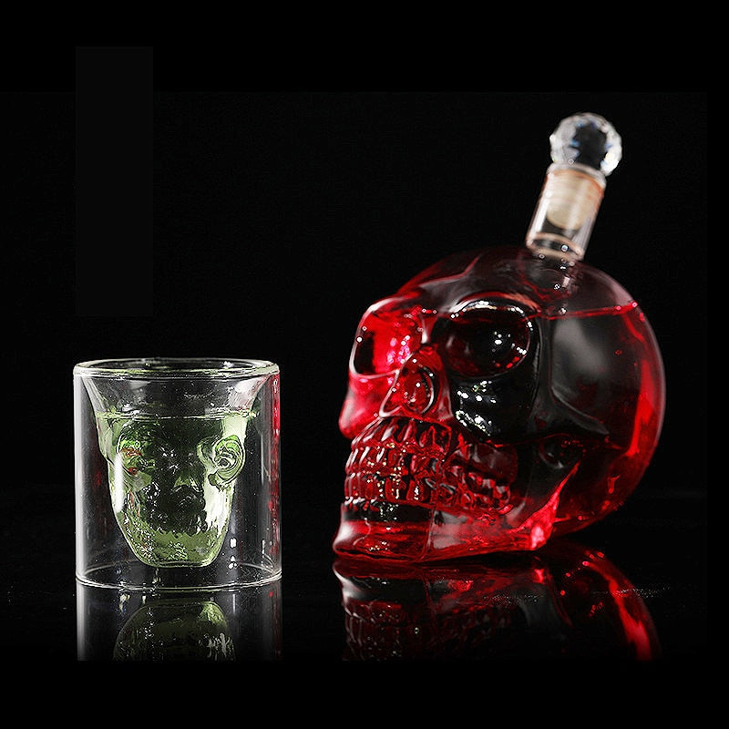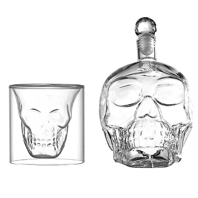 Set: 1000ml Skull Alcohol Bottle + 2 Skull Wine Glasses